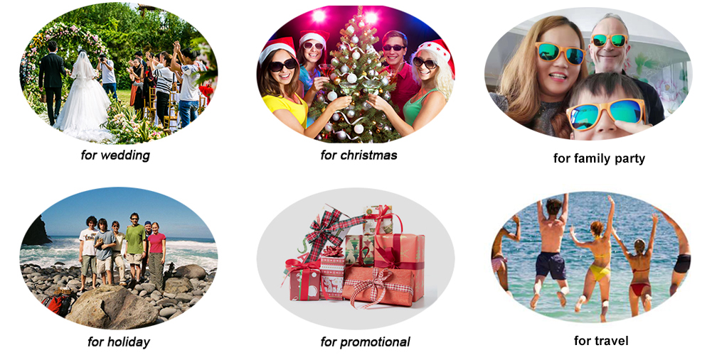 Custom sunglasses manufacturers can print custom logo to the outside of arms of sunglasses,so the applications are for promotion,wedding,sport event,party,branding and give away gifts.people always can remember the logo and brand,when they wear this sunglasses.